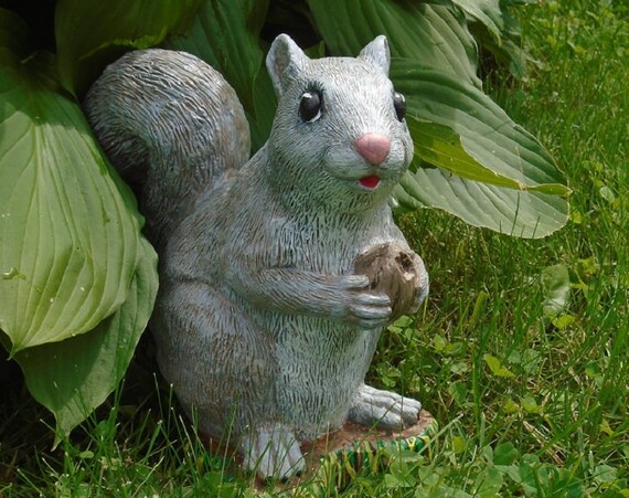 Squirrel Concrete Statue Hand Painted Life Size Figurine Yard Etsy Uk